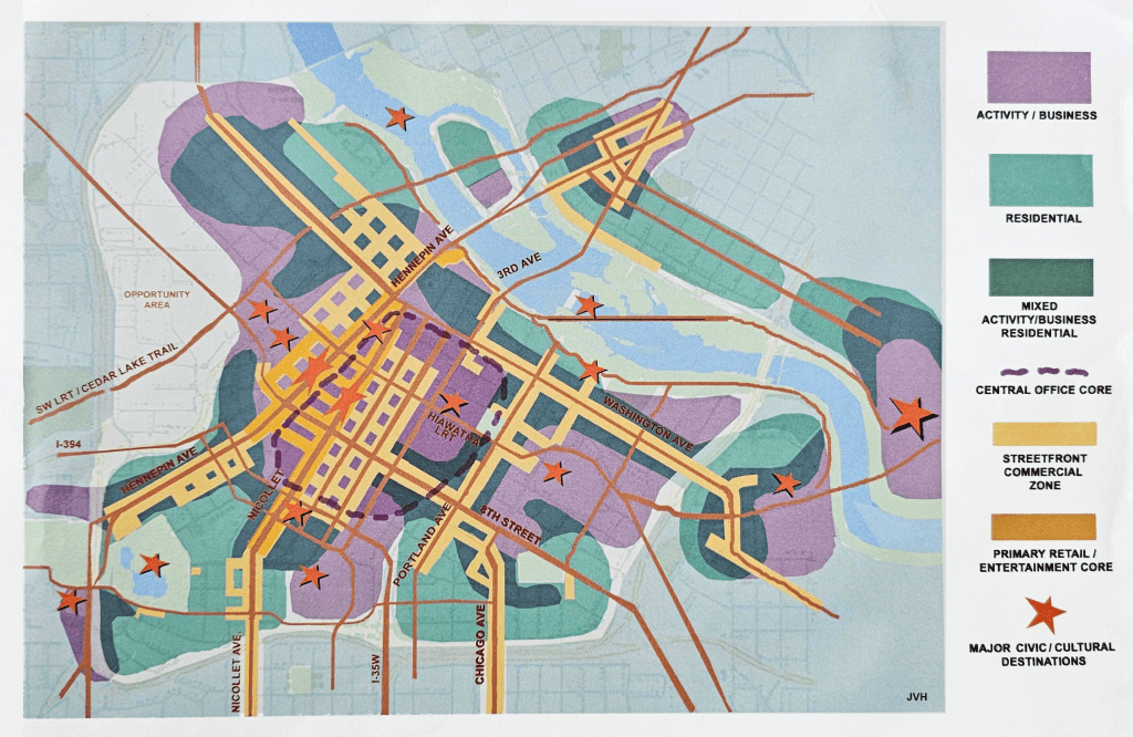 2011 Diagram of Downtown Produced by John Van Heel for discussion at the downtown neighborhoods work group that was part of planning for the Intersections Downtown 2025 Plan