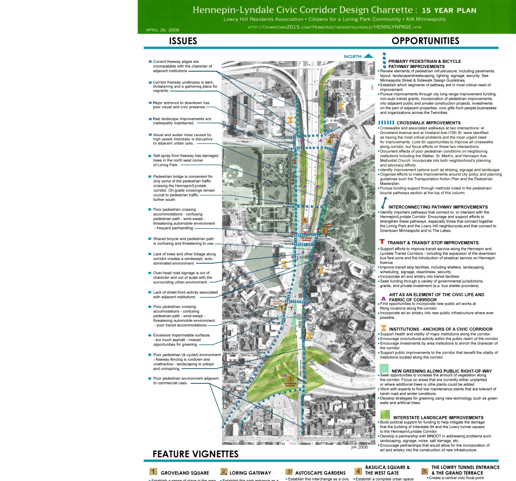 2008 Hennepin Lyndale Redesign Charrette On April 26, 2008 The Loring Park and Lowry Hill neighborhood associations (CLPC, LHNI) organized a Hennepin Lyndale re-design charrette in cooperation with the Minneapolis Chapter of the American Institute of Architects. The event was held on April 26, 2008 at the Walker Art Center. Participants included representatives of area institutions, residents, business owners and other interested people from across the city.